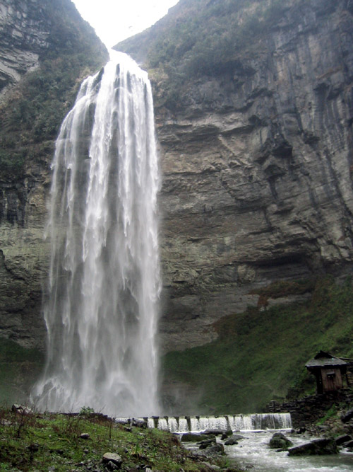 九龍溪源頭的流紗瀑布高216米,是全國最高的瀑布,有人說它還是全世界最高的瀑布,在2011年入選“2011游客最喜愛的中國十大瀑布旅游勝地”。豐水期,滾滾流水從懸崖上飛落入深潭,猶如九龍翻波,吞云吐霧,聲若巨雷,震撼山谷,氣勢(shì)磅礴,雄奇壯觀!每當(dāng)枯水時(shí)節(jié),流水飄下懸崖,時(shí)而如輕紗拂面,時(shí)而似珠簾懸掛宛如白紗蕩滌綠潭漾起層層漣漪婀娜多姿溫柔秀雅。從正面仰望瀑布,好像瀑布是從云端飛流直下,可謂“飛流直下三千尺,疑是銀河落九天。”沿潭畔走至瀑布里去,象是猴王鉆進(jìn)了水簾洞。從瀑布背后觀瀑布,只看見瀑布是從一個(gè)半園形的“月亮巖”上飛瀉下來的。瀑布在飄、舞、進(jìn)、退,如浪、如波、如紗、如練。由于峽谷變幻莫測(cè)。當(dāng)陽光照射時(shí),瀑布上簾便生出七彩長虹。彩虹隨著水珠往下飄落:只見一彩虹落下,一個(gè)又冒出來;一個(gè)緊接著一個(gè)地消失,一個(gè)緊接著一個(gè)地產(chǎn)生,那一道道閃現(xiàn)奇光的彩虹真是太美麗了!