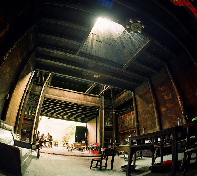 院內(nèi)廂房按家室的輩分依次居住。廂房的木窗雕龍刻鳳,每一板雕刻都是一個(gè)美麗的傳說。其中《梁祝》、《天仙配》、《蚌殼燈》、《彩龍船》、《鼠叼葡萄》、《老鷹抓雞》等雕刻更是入木三分,惟妙惟肖。樓上則主要用于囤積貨物,擺放雜物、晾曬衣物等。后側(cè)建有伙房和廁房,院落后部則是花園,花園的盡頭緊連著河邊的私家碼頭。