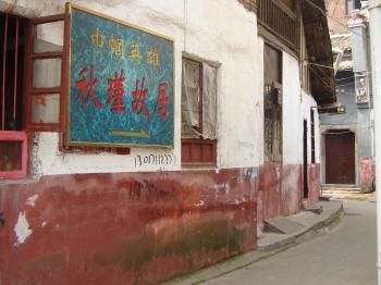 秋瑾故居位于湘潭市十八總由義巷。這位近代史上杰出的巾國(guó)英雄、婦女解放運(yùn)動(dòng)的先驅(qū),在這里度過了8個(gè)春秋。離大碼頭不遠(yuǎn)處有一條寬敞的小巷叫由義巷,巷兩旁墻高院深,大多是官紳富商之家,也開設(shè)了幾家當(dāng)鋪、錢莊。進(jìn)巷口十多丈遠(yuǎn)處,有一棟青磚青瓦麻石門樓的鋪面,大門上首有一塊漢白玉石刻招牌“義源當(dāng)”,這是湘潭有名的義源當(dāng)鋪。