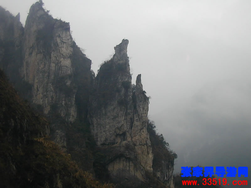 站在空殼巖邊往南遠(yuǎn)眺,只見雄壁巖上灰朦朦一片,如煙雨一般,這便是有名的“仙人煙雨!”你看:雨絲并不大,根根細(xì)如麻,斷斷續(xù)續(xù)隨風(fēng)灑,白云生處冒煙霞,啊!好一幅江山多嬌的水墨畫!