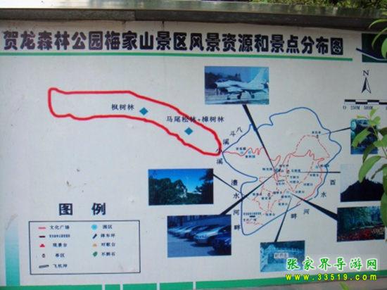 位于桑植縣城北門橋頭的澧水河畔。1929年7月,紅四軍軍長賀龍,在此山腰,設(shè)立指揮所,巧布空城計,誘殲“圍剿”司令向子榮部兩千余人于赤溪河中,史稱“赤溪大捷”。自此,梅家山更聞名遐邇,常有人登臨其上,遠眺山川勝勢,緬懷革命先烈偉績。50年代后,縣軍事體育部門,先后在指揮所舊址下側(cè)建修靶場,培訓民兵的運動健兒。1984年春,縣有關(guān)部門劃出29公頃山地,建立園林公園。