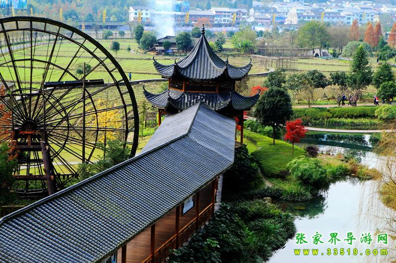 生態(tài)廣場共種植了近1600余株喬灌木,草皮、綠化工程共占地近3萬平方米,是廣場總面積的61%。香樟、桂花、紫薇等四季常青的樹木爭芳斗艷,是人們休閑時的綠色伴侶。田園風(fēng)光與綠化景觀交相輝映,隔游道相望,農(nóng)田近2萬平方米,集中在廣場東南部,水稻、玉米及各類果蔬與農(nóng)舍、家禽、和平鴿的融合,串連著鄉(xiāng)村小路,讓鄉(xiāng)野韻味達到了極致。水、石磨,還有蒼勁的風(fēng)水樹仿佛將人們帶入了一個古老的世界,石拱橋、鐵索橋與斗拱建筑渾然一體,既有江南水鄉(xiāng)的柔美,又不失土家特色。