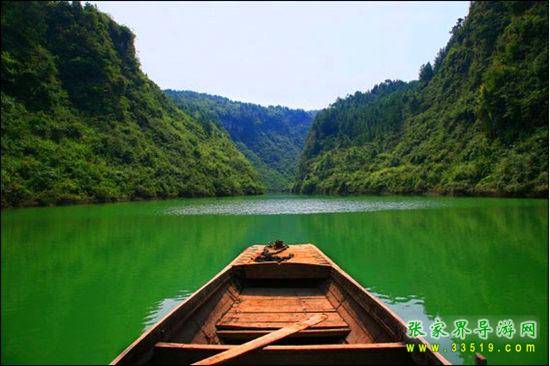 【神泉湖】我們現(xiàn)在乘坐游船游覽的就是我們張家界大峽谷的神泉湖,一個(gè)充滿詩意的地方。湖水干凈清洌,宛如一面明鏡,山在水中,水在山中,湖光山色,美不勝收。湖水主要來源于溪水、地下水和雨水,生活著各種淡水魚類,比如青、草、鰱、鳙這樣的湖南省四大家魚,還有國家二級保護(hù)動(dòng)物娃娃魚。神泉湖湖域面積近200畝,綠樹翠竹倒映水中,讓我們心曠神怡。大家慢慢享受吧。