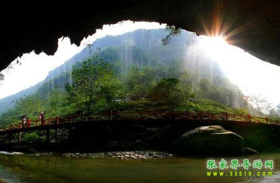 【中華牌天然空調(diào)】喲,我們行走到這里,怎么感覺到了陣陣涼風(fēng)撲面而來?!奧,原來是游道的轉(zhuǎn)角處有一個(gè)天然的涼風(fēng)洞。大家都知道,張家界的天然溶洞很多,比如黃龍洞、龍王洞、九天洞,還有我們公司即將開發(fā)的更漂亮更具有特色的懸絲洞。溶洞內(nèi)都是冬暖夏涼,和洞外的氣溫不一樣。所以,游客朋友們都叫它中華牌天然空調(diào)。大家可以在這里盡情地享受天然空調(diào)。