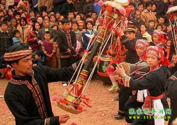 仗鼓舞是白族的一種獨(dú)特舞蹈,尤其是張家界天子山一帶的白族人,大都愛跳仗鼓舞。逢年過節(jié)、游神、趕會(huì),山山寨寨都要舉行歡樂的“跳舞節(jié)”。仗鼓舞根據(jù)人數(shù)多少,分為4人舞、8人舞、32人舞等多種形式,主要道具是仗鼓,鼓長(zhǎng)1.2米,兩頭粗,中間細(xì),因兩頭緊繃牛皮,敲擊時(shí)便“嘭嘭”作響。跳舞前須祭祀祖先,然后由三位德高望重的老者先入場(chǎng)引導(dǎo)圍圈歡跳,擺呵、蹬呵、拍呵,繞著場(chǎng)子一圈又一圈地跳,鼓聲陣陣,還有嗩吶、笛子等樂器伴奏,舞姿靈活多變,古樸大方,驚險(xiǎn)敏捷,民族色彩濃郁。