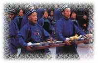 指著圓符,不久,蒙面者便神魂入定;似有神附體,慢慢地全身抖動(dòng)起來(lái),手舞足蹈,這就是已“進(jìn)入陰間”。據(jù)傳過(guò)陰之人,雖蒙頭蓋面,也能辨別方向,隨法師的指使行事,陰間之事能有問(wèn)必答,人們所要了解之事,也都從他們那里得到答復(fù),并可以探求禳解之法。法師用法術(shù)指使他們?nèi)プ龈鳂邮虑?。到一定時(shí)間,法師用咒語(yǔ)報(bào)他們招回,他們?cè)诜◣煹闹甘鞠拢懤m(xù)返回陽(yáng)世清醒過(guò)來(lái)。若有個(gè)別不能返回,法師則加倍對(duì)他們施法,用刀指向他,并念咒畫(huà)符,強(qiáng)令返回。過(guò)陰之人蘇醒后,法師揭開(kāi)頭蓋,這時(shí)個(gè)個(gè)面色慘白,目光遲鈍,如害一場(chǎng)大病。法師再施以復(fù)原之術(shù),使之慢慢復(fù)原。他們復(fù)原后,完全忘記陰間的事情。