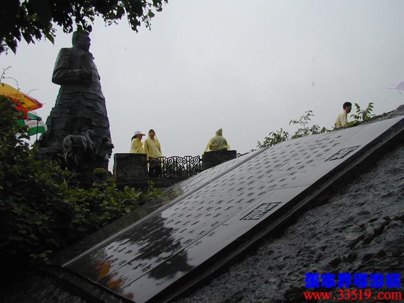 (賀龍銅像)賀龍元帥是中華人民共和國的開國元勛,人民解放軍的締造者之一。他就出生在天子山西邊桑植縣洪家關的一個農民家庭,從兩把菜刀砍鹽局首義起,一生充滿傳奇色彩,元帥家鄉(xiāng)流傳著無數(shù)關于他的故事與傳說。天子山一帶曾經是賀龍、任弼時、肖克、王震等將軍打過游擊的地方。一回,賀龍在鑼鼓塌被民團包圍了,當?shù)乩习傩占敝猩?,把賀龍卷在斗墊里,躲過了殺身之禍。這個故事至今還在這一帶流傳。