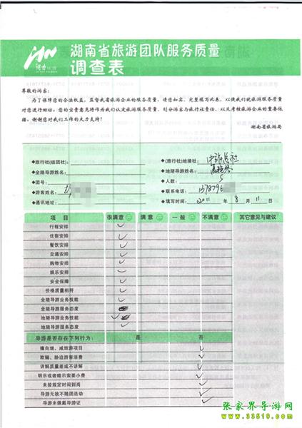 2011年8月11日彭先生一行5人旅游質(zhì)量反饋