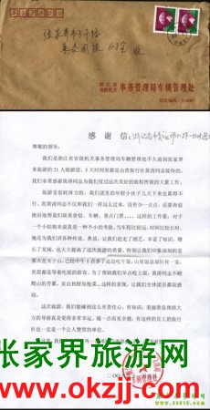 浙江省省級(jí)機(jī)關(guān)事務(wù)管理局車(chē)輛管理處致張家界康泰國(guó)旅導(dǎo)游黃濤感謝信