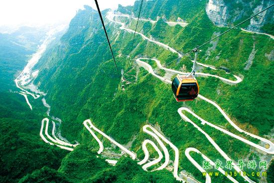 登天門山不需要爬山,至位于張家界市區(qū)的天門山索道下站,乘世界最長高山客運(yùn)索道—天門山索道(長7.5公里)直達(dá)山頂,沿途可先鳥瞰美麗山城的醉人景 致,再飽覽清新靜謐的鄉(xiāng)村田園,然后緩緩飛渡進(jìn)奇峰險壑的懷抱中,在山尖與陡崖之上不斷爬升,體驗(yàn)騰云飛翔的刺激與震撼,30分鐘到達(dá)天門山頂原始空中花園。